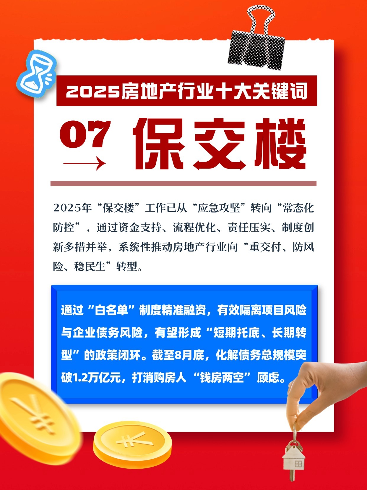 2025年“保交楼”工作已从“应急攻坚”转向“常态化防控”,通过资金支持、流程优化、责任压实、制度创新多措并举,系统性推动房地产行业向“重交付、防风险、稳民生”转型。未来,政策将更加注重长效机制建设,从根源上保障购房者权益,促进房地产市场平稳健康发展。