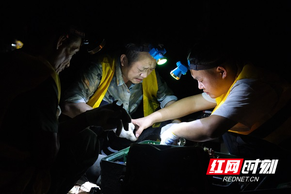 夜幕降临,施工人员紧张地进行设备改造作业。