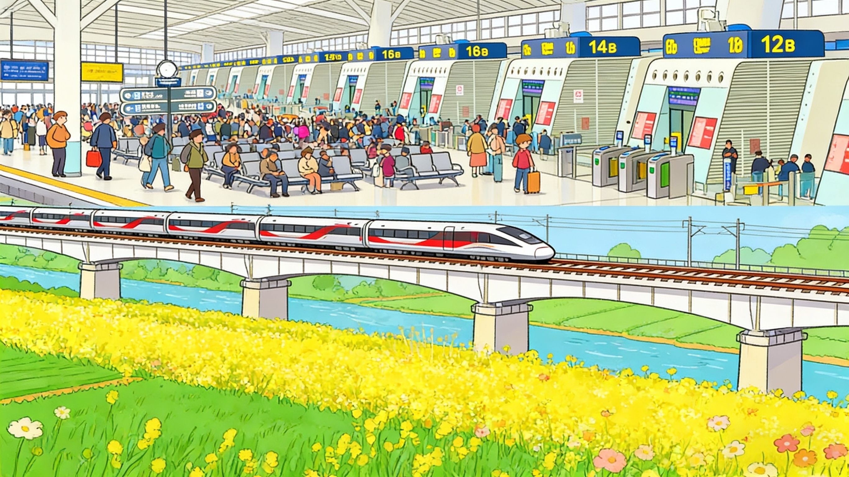 9385万人次的背后,是铁路人的坚守与付出——乘务员连轴转、调度员紧盯屏幕、检修工昼夜维保,只为守护每一段旅途安全 。更见证着国人生活的烟火气回归:消费旺了、人气足了、心情好了,文旅市场热热闹闹,城乡往来愈发紧密。安全有序的铁路运输,既承载着人们对亲情、乡情、春光的向往,也为经济复苏、民生幸福添上了浓墨重彩的一笔。