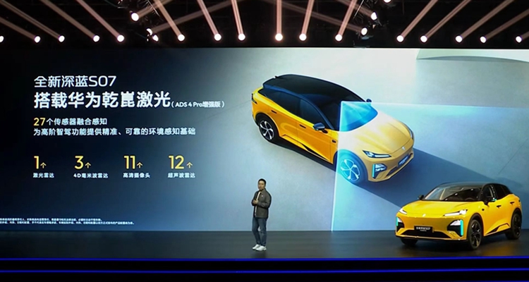 深蓝汽车有关负责人介绍,全新深蓝S07搭载华为乾崑激光ADS 4 Pro增强版,配备27个传感器实现融合感知,包含1个激光雷达、3个4D毫米波雷达、12个超声波雷达、11个高清摄像头,为高阶智能辅助驾驶功能,筑牢精准、可靠的环境感知基础。