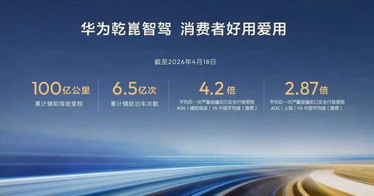 数据显示,华为乾崑智驾累计辅助行驶里程突破100亿公里,累计辅助泊车次数已达6.5亿次。这个数据充分表明,华为乾崑智驾不仅辅助驾驶里程领先、行驶稳健,更以极致可靠,让出行安心无忧。