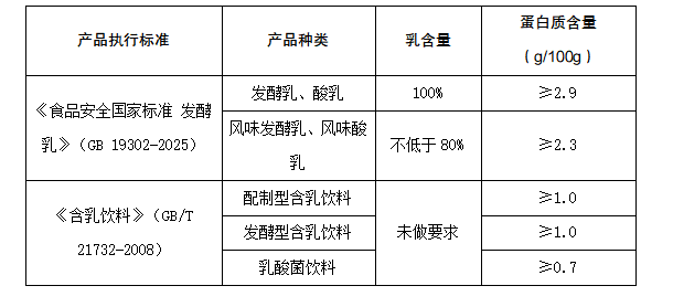根据《含乳饮料》(GB/T21732—2008)规定,含乳饮料是以乳或乳制品为原料,加入水及适量辅料经配制或发酵而成的饮料制品,可分为配制型含乳饮料、发酵型含乳饮料、乳酸菌饮料。由于该标准未限制乳含量,即便添加极少量生乳或牛(羊)奶,也可归为含乳饮料,其蛋白质含量远低于牛(羊)奶,不能替代牛(羊)奶饮用。