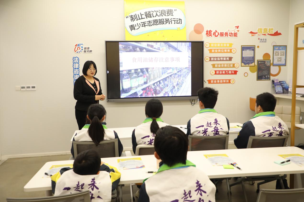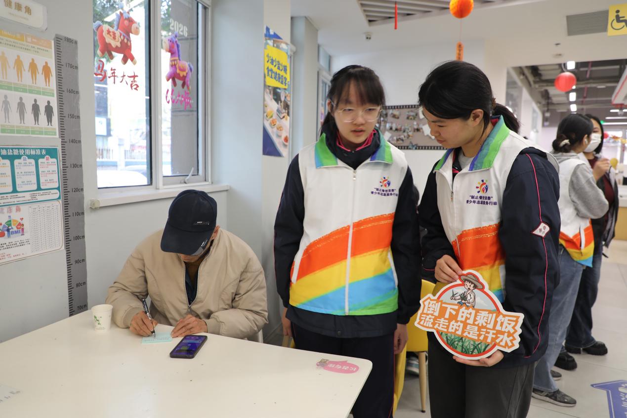 志愿者们积极参与“制止餐饮浪费”青少年志愿服务行动。 中国经济网 王岩/摄