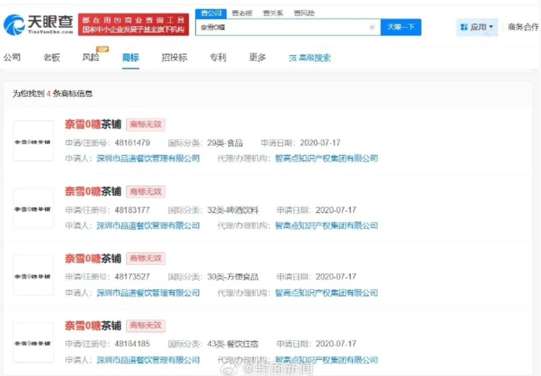 值得注意的是,天眼查知识产权信息显示,“0脂”“0糖”已被多方抢注为商标,目前绝大多数商标已被驳回,处于无效状态。
