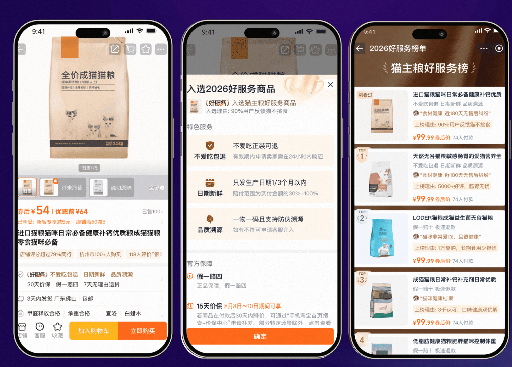 同时,淘宝天猫还将上线优质商家减赔机制,细化各行业、各场景规则,帮助商家减少赔付;针对退货不符场景,淘宝天猫与品牌建立互信机制,涵盖商品供应链溯源、售后举证等环节,在2026年扩大试点商家。