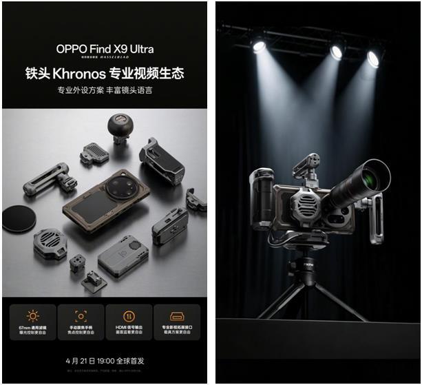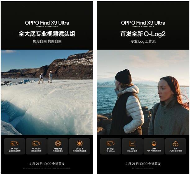 强大的视频创作实力,离不开旗舰级影像硬件的底层加持。OPPO Find X9 Ultra 搭载了哈苏 10 倍光变天眼长焦,并配合 2 亿像素超大底主摄、2 亿像素超大底长焦及第二代丹霞色彩还原镜头,以前所未有的全大底五摄光学系统,为卓越的视频表现提供了坚实的硬件保障。这让 Find X9 Ultra 不仅是能让哈苏专业影像底蕴被用户轻松装入口袋的“口袋哈苏”,更是一台能够随时随地投入专业视频工作的“口袋电影机”。全新 Find X9 Ultra 将于4月21日 19:00 正式全球发布,更多产品亮点与详细信息,敬请持续关注 OPPO 官方。