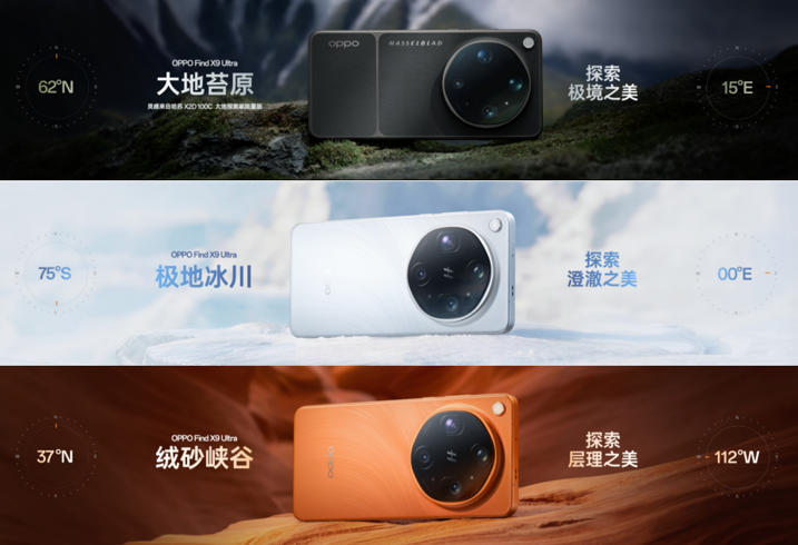 全新Find X9 Ultra提供大地苔原、极地冰川、绒砂峡谷三种质感配色,12GB+256GB 零售价7499元、12GB+512GB 零售价7999元、16GB+512GB 零售价8499元、16GB+1TB 零售价9299元、16GB+1TB(卫星通信版) 零售价9499元。目前两款旗舰新品已在线上、线下全渠道开启预定,并将于 4 月24 日10:00开售。