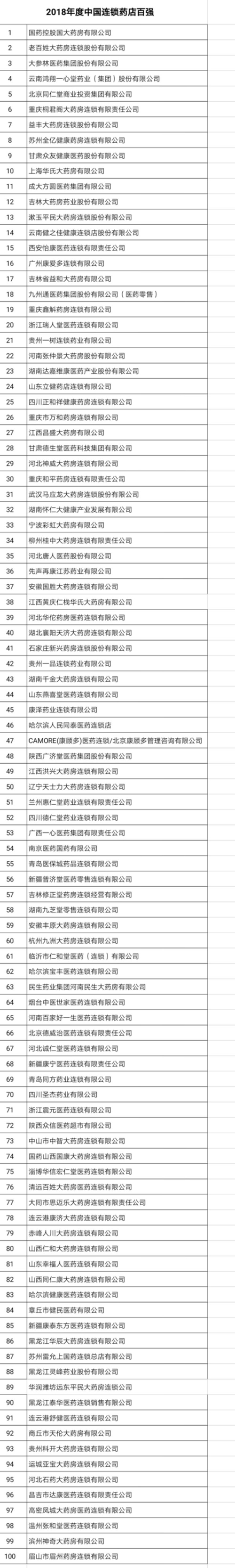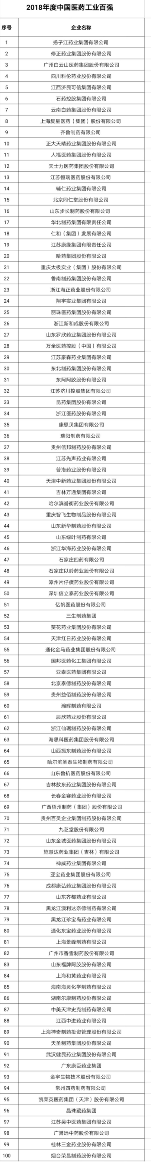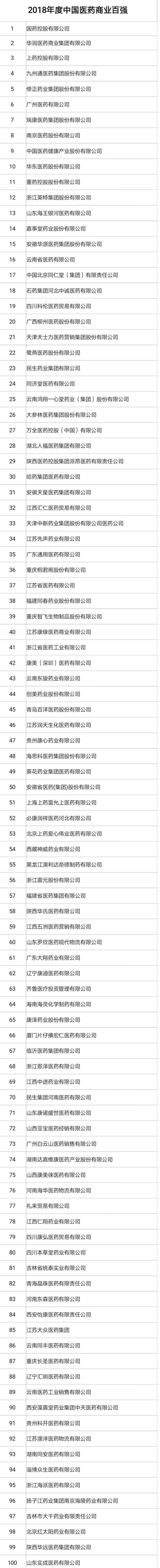 附:2018年度中国医药工业百强、2018年度中国医药商业百强、2018年度中国连锁药店百强