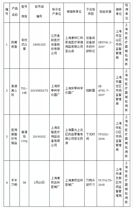 经济日报-中国经济网北京12月8日讯 12月7日,上海市药品监督管理局发布上海市医疗器械抽检结果通告(2020年第1号)显示,经上海市医疗器械检测所检测,江苏鱼跃医疗设备股份有限公司、上海安亭科学仪器厂等企业生产的4批次医疗器械抽检不合格。