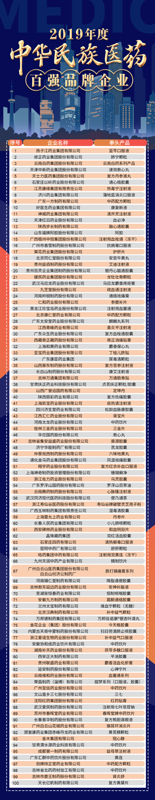 2019年度中华民族医药百强品牌企业榜单发布