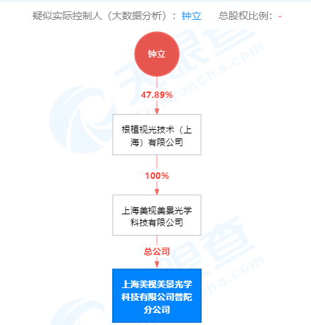 天眼查显示,上海美视美景光学科技有限公司普陀分公司是上海美视美景光学科技有限公司的子公司,是根植视光技术(上海)有限公司的孙公司,实际控股人为钟立。