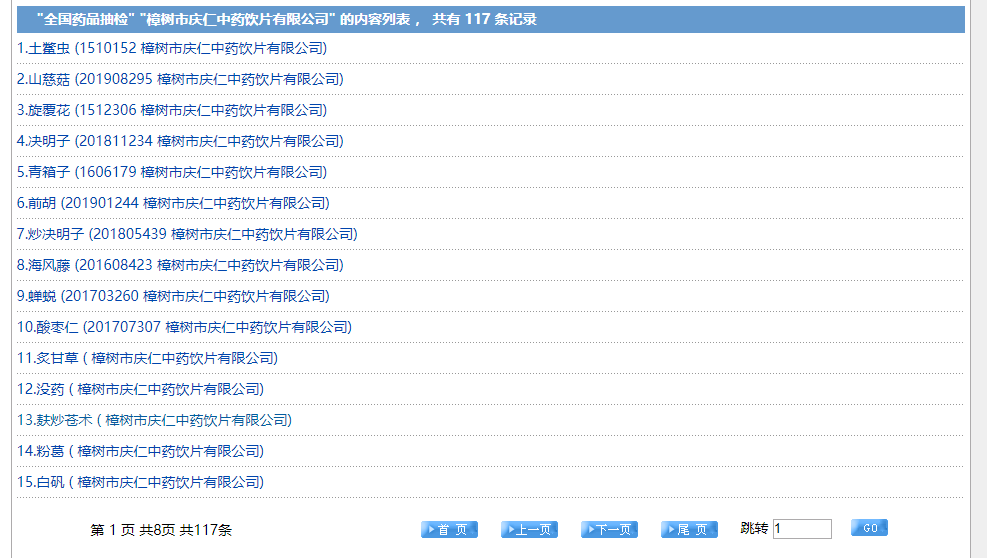 国家药监局数据库显示,截至4月13日,标示樟树市庆仁中药饮片有限公司生产的药品已有117条不合格记录。不合格药品生产批号涉2014年至2019年,2017年和2018年药品居多。