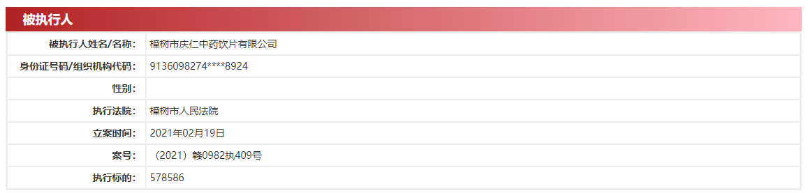 天眼查显示,因为频繁的生产不合格药品,樟树市庆仁中药饮片有限公司2019年曾被江西省樟树药品监督管理局行政处罚。此外,该公司还被列为被执行人,执行标为578586元。