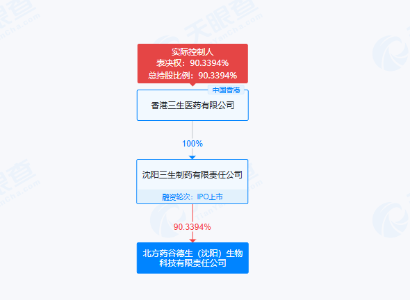 天眼查显示,北方药谷德生 (沈阳)生物科技有限责任公司注册资本383000万人民币,成立于2018年,系三生制药成员。