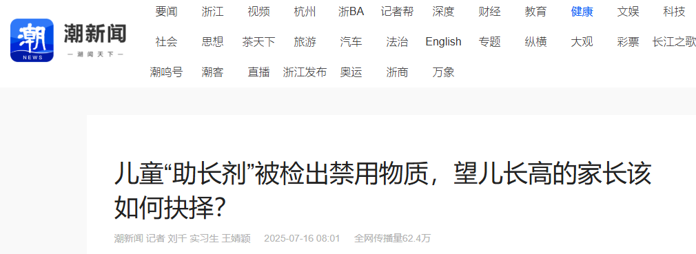 通知还提示说,未成年运动员不要为了增长身高,就去误服类似这种含有禁用物质的膳食补充剂。