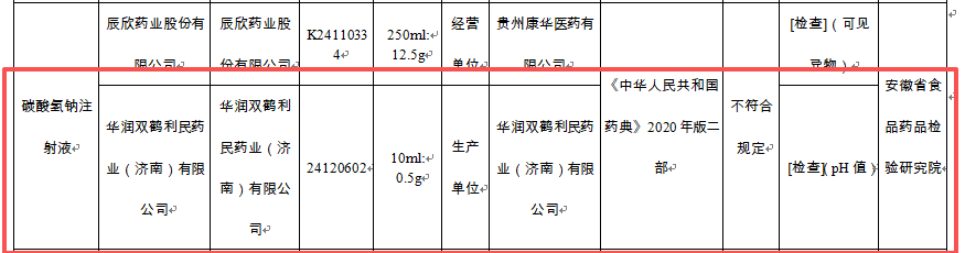 中国经济网1月7日讯 国家药监局1月6日发布的《关于28批次不符合规定药品的通告》显示,经安徽省食品药品检验研究院检验,标示为华润双鹤利民药业(济南)有限公司生产的碳酸氢钠注射液(批号:24120602)不符合规定,不符合规定项目为pH值。pH值系指氢离子浓度指数,作为酸碱程度的衡量指标。