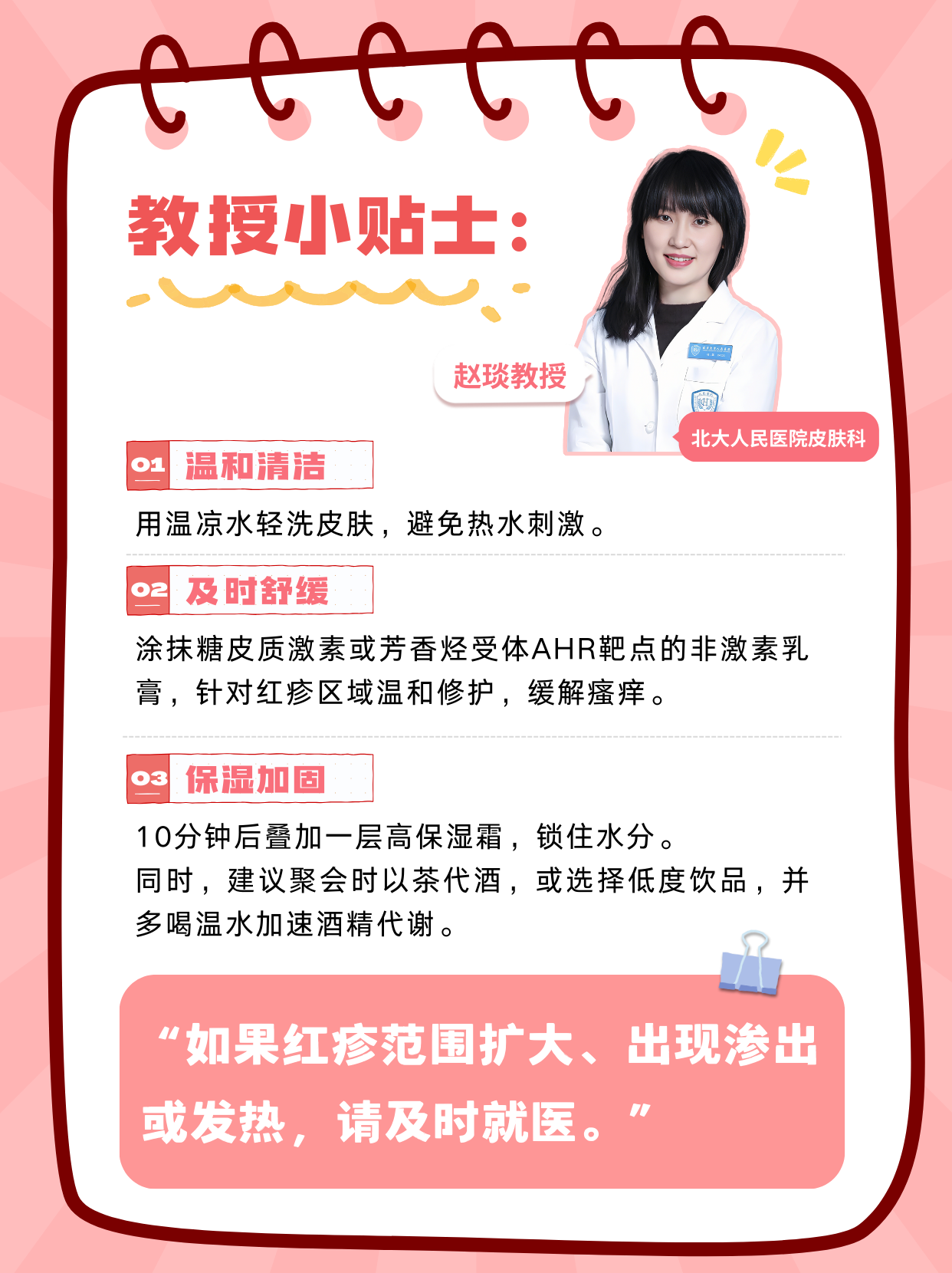 “如果红疹范围扩大、出现渗出或发热,请及时就医。”