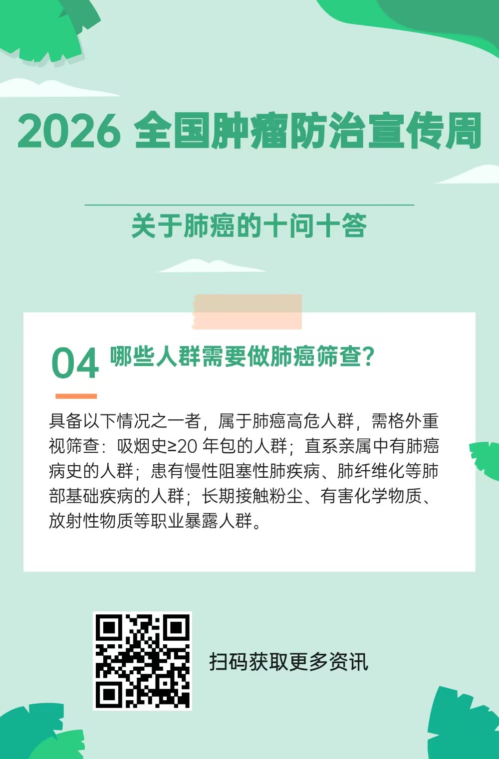2026年4月15日—21日是第32个全国肿瘤防治宣传周,今年宣传周主题为“早防早筛早治 同心携手抗癌”。肺癌在全球及我国均是发病率、死亡率居高不下的恶性肿瘤,早预防、早筛查、早治疗是提升治愈率、改善患者预后的核心关键。围绕大众普遍关心的肺癌防控问题,记者专访了北京清华长庚医院胸外科主任陈东红教授,整理出十大核心疑问并进行解答。