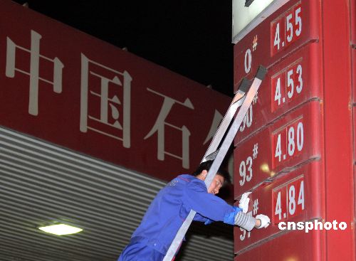 2006年5月24日凌晨,沈阳一家加油站的工作人员正在更改油价。自24日零点开始,中国燃油价格再次上涨。