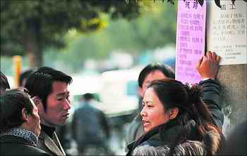 尽管离召开新春首场人才招聘会(2月9日)还有3天,浙江省义乌市人才市场关闭的大门前已由数千人自发形成了一个热闹的劳动力市场。招工者纷纷到此发布招聘信息,等待来自全国各地的务工者自主选择。包括义乌在内的江浙部分地区2005年曾遭遇罕见的“民工荒”。往年元宵节后才是劳动力市场的旺季,而今年义乌劳动力市场提前热闹起来。新华社记者 黄深钢摄