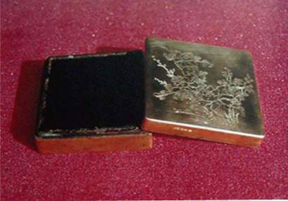 毛泽东在中南海丰泽园用的铜墨盒。毛泽东原先有个小墨盒,走到哪能就带到哪里,有一次,毛泽东到杭州,住进汪庄招待所,看到所里准备的这个大墨盒,用起来很方便,就对工作人员说:“你去请示一下所领导,我们换一个墨盒用,看行不行。”所负责人听了后说:“主席需要,拿走就是了。”就这样,毛泽东把自己用了多年的小铜墨盒留在了汪庄招待所,换回了这个大的。