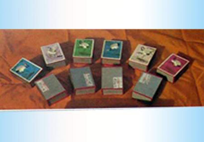 抽烟是毛泽东的嗜好。为外出携带方便,工作人员的来双猫空烟盒,装入烟卷。冬季气候干燥,烟卷干得掉渣,不好抽,工作人员就将两片油菜叶子放进烟盒里,下铺上盖,保证烟不干,好抽。毛泽东经常教育工作人员:火柴用完了,火柴盒不许扔,买来散火柴装上再用。这是毛泽东反复用过的火柴盒。